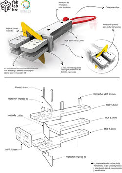 En un trabajo conjunto entre Fab Lab Bariloche y la organización comunitaria Bariloche Sustentable, y basándose en el trabajo del Diseñador Industrial Alejandro Sarmiento, nace la idea de generar una herramienta de filamentos de bajo costo y abierta al público para reutilizar las botellas plásticas en la búsqueda de nuevas aplicaciones para ese material. Se desarrolló entonces un archivo digital que contiene el desarrollo plano de la herramienta para ser cortada en láser en MDF de 5.5mm más una pieza de protección que se imprime en 3D. Estas tecnologías (impresión 3D y corte láser) forman parte de las maquinarias más comunes en FabLabs, Makerspace, Hackerspace, etc; donde puede replicarse esta actividad de manera libre y gratuita.